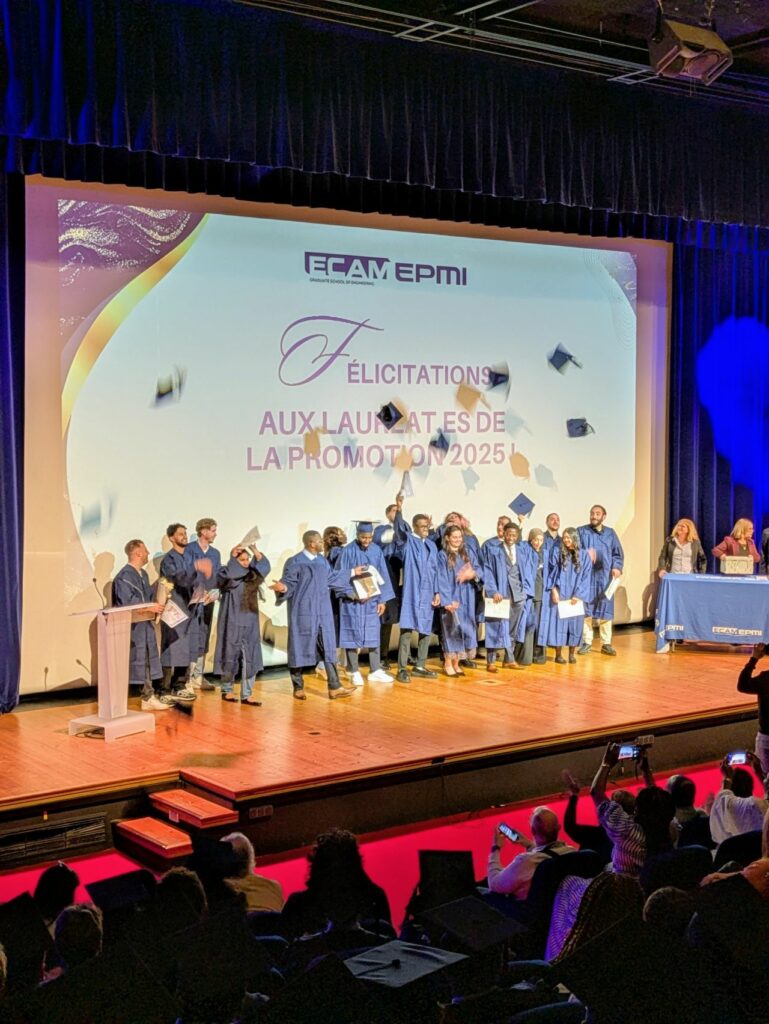 Cette magnifique cérémonie s’est achevée, comme de coutume, autour d’un cocktail convivial réunissant dans un moment de bonheur partagé diplômés, invités, élèves, professeurs et personnels administratifs d’ECAM-EPMI.